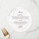 Minimalist Script Font Monogram | Elegant Round Wedding Menu Card.