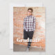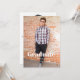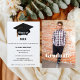 Minimalist script graduation invitation card, A single photo of the graduate appears on the elegant grad party postcard invitation. The grad's name, school, and class year are written in casual modern black script on the back.