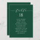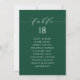 This is a customisable table number seating plan. It features a whimsical script and classic typography on a green background. Personalise by adding your own details. This minimalist table seating plan is perfect for weddings, baby showers, bridal showers, birthdays, and so much more.