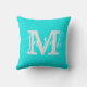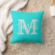 Minimalist Script Monogram Name Bright Teal Cushion