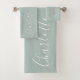 Minimalist Script Monogrammed Stylish Dusty Blue Bath Towel Set