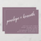 This contemporary wedding invitation features a minimalist horizontal composition and a beautiful script calligraphy in dusty plum purple.
