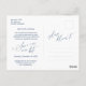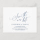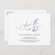 This is the modern minimalist clean script, design themed, in Navy Blue font, Wedding party invitation Rescheduled (postponed / postponement) postcard (save the new date) . It is the perfect and elegant way to make the reschedule announcement to your friends and family.