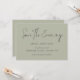 Minimalist Script Pale Sage Green Save The Evening. Available digitally and printed. Simple elegance to send to your evening party guests. Save The Evening is in a modern set script.The rest of the text you can easily personalise.Shown here in black on soft light Sage green however the text and background colours can be changed if you wish via the customise further option.