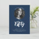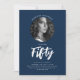 Minimalist Script Photo 50th Birthday Navy Blue Invitation