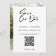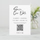 Less hassle, no missing mail when you invite your guests online with a QR code that sends them directly to your wedding website for additional details. The design features a minimalist, simple black and white creative with a modern very elegant calligraphy Save Our Date script. Easily replace with your own QR code and your personal information of choice. There are QR code generators online if needed. Simply place the keywords "QR code creator" into Google search and lots of free options will appear for you to choose from.