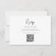 Modern and elegant Minimalist Script Wedding RSVP QR Card is designed to help you celebrate your wedding with style! Invite your guests to RSVP online with your QR code that sends them directly to your wedding website. The design features a minimalist, black and white design with a modern very elegant calligraphy RSVP script. Replace with your photo on the back. Combine with other items from the Minimalist Elegant Script Wedding invitations collection. ©EpicSparkle