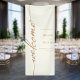 Create your own personalised wedding welcome sign banner with elegant calligraphy script typography and modern minimal ivory and tan design.