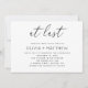 This elegant black and white wedding invitation features the romantic phrase At Last in delicate script. The minimalist layout and refined typography create a clean and timeless look that suits a wide range of wedding styles. The back includes a customisable QR code, perfect for linking to your wedding website, RSVP form, registry, or event details. Whether you’re a couple planning your special day or an event planner designing for a client, this invitation is fully editable and available in both printed and digital formats. A beautiful choice for romantic, minimalist, or contemporary weddings.