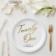 Minimalist Script white and Gold 21st Birthday Paper Plate