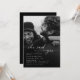 Black and white minimalist "she said yes" bridal shower photo invitation with black gradient overlay.