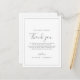 This minimalist silver thank you reception card is perfect for a simple wedding. The modern romantic design features classic silver grey and white typography paired with a rustic yet elegant calligraphy with vintage hand lettered style. Customisable in any colour. Keep the design simple and elegant, as is, or personalise it by adding your own graphics and artwork. Place these cards at the table setting for each of your guests at your wedding reception. Personalise the card with your names and a special thank you message.
