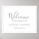 This minimalist silver wedding welcome poster is perfect for a simple wedding. The modern romantic design features classic silver grey and white typography paired with a rustic yet elegant calligraphy with vintage hand lettered style. Customisable in any colour. Keep the design simple and elegant, as is, or personalise it by adding your own graphics and artwork. Customise the poster with the name of the bride and groom, and the date of the wedding.