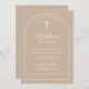 Minimalist simple beige taupe arch baptism invitation