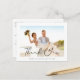 This is a minimalist and modern photo wedding thank you card using an elegant handwritten script font, printed on a convenient postcard.