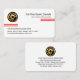 An all white cover is accentuated by a pair of red lines at the top and bottom levels of the card. Your prestigious name, the job title and a global logo you can use are at the top. The global logo is a rotating tire rim. Below the gold logo are your business name and contact details.