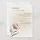 A clean minimalist wedding invitation background featuring a single watercolor dusty rose flower on a soft cream backdrop, perfect for modern elegant wedding stationery.
