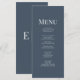 Minimalist Slate Blue Monogram Wedding Menu Card