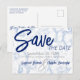 Send off the "Save The Date" announcement for your wedding with a smokey blue design. Personalise the front and back text in the template fields, remove text or edit using the design tool to select a typeface style, size, and colour you prefer.