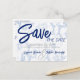 Send off the "Save The Date" announcement for your wedding with a smokey blue design. Personalise the front and back text in the template fields, remove text or edit using the design tool to select a typeface style, size, and colour you prefer.