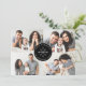 Modern holiday card featuring a four photo collage with a simple white snowflake in the middle inside of a black circle frame. Personalise the minimalist Christmas card by adding a custom greeting and your name. The card reverses to display a white snowflake pattern on a black background.