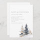 Modern minimalist wedding invitations for winter featuring watercolor trees in slate blue and tan on a snowy slope. Add your wedding QR code to the reverse.