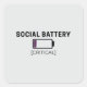 A clean, minimalist sticker for introverts featuring a 'Social Battery Low' typography design. High contrast black and white esthetic. Perfect for laptops, water bottles, or journals. A great gift for the quiet soul.