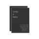 This modern wedding invitation features a soft black deep charcoal background with clean serif typography for a refined, editorial look. The minimalist layout highlights the couple’s names and wedding details in a calm, confident way that feels timeless and intentional. Ideal for couples drawn to understated elegance and modern design. Customize the names, date, location, and RSVP details to reflect your celebration.