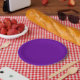 A pretty shade of violet purple to match your chosen wedding colour palette. Add text to these paper plates. Add a round circle shape in the system. Delete the bright purple graphic if you'd like to use the system to fine tune the shade of purple.