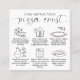 Minimalist Pizza Crust Care Cards with elegant calligraphy font and care icons. This modern black and white sourdough pizza crust care instructions guide includes step-by-step icons and instructions on how to store, freeze and cook par-baked pizza base. You can customise all care instructions, add your logo and contact details to this card to make your custom sourdough bakery package inserts.