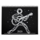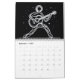 Striking in its simplicity, this calendar features minimalist stick figure drawings of a guitar player, rendered in clean white lines on a black background. Perfect for music lovers and fans of minimalist art, each month brings a new pose and a fresh dose of inspiration. Add a touch of musical elegance to your year!