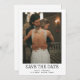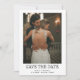 This simple and elegant black and white wedding save the date card features your personal photo on the front, with a mix of modern handwritten script and bold serif text.