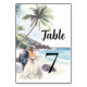 Minimalist Summer Beach Destination Wedding Table Number. Featuring soft watercolor florals in dreamy dusty blue tones, modern typography, this design beautifully complements spring garden, outdoor, or rustic-chic weddings.