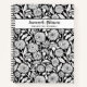 A gorgeous minimalist design showing a black and white block print sunflower design on a light background. Personalise with a name and type of notebook