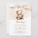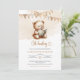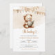 Minimalist teddy bear reading a book bunting flags invitation