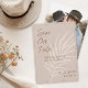 Announce your big day in style with this terracotta boho save the date card. Featuring a warm earthy background, modern script typography, and a subtle palm leaf illustration, this design blends minimalist elegance with organic bohemian charm. Customise with your names, wedding date, and location for a personalised keepsake that sets the tone for your celebration. Perfect for rustic chic, modern, or botanical weddings.