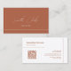 A Minimalist and Simple Terracotta colour Lines business card featuring the handwritten script font and small classic clean typography with a QR code.