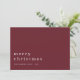 Minimalist Text Burgundy White Merry Christmas Simple elegant minimalism with this fully customisable design. The greeting on the front is larger in stylish lowercase with name and year beneath and your custom message on the back. Easily personalise the text and can be changed to any colours of your choice via the customise further option. Available digitally or printed.