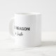 Elegant ceramic mug: "THE REASON" in classic serif, "I Smile" in flowing script. Black typography on white creates a clean, sentimental design.