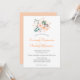 This minimalist botanical wedding invitation features a bouquet of orange shaded florals along the top and back bottom. The card back matches a hue from the flowers. Personalise the design with your wedding details in the template fields.