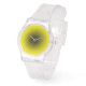 Featuring a sleek design, this unisex timepiece offers a clean 3D effect black and yellow dial with simple, minimalist hands and a comfortable clear strap.