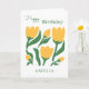 Celebrate her special day with this elegant, hand-drawn tulip birthday card. Designed in a fresh scandi-minimalist style, this card features vibrant yellow florals that bring a cheerful botanical vibe to any birthday message.