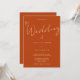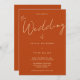 A wedding invitation with a minimalist typography design. This orange solid colour invitation accents the big event with the word Wedding in a large, handwriting-style, font. The rest of the invitation is in clean, open, typography that gives the design a strong structure. This invitation reflects the relaxed, yet well-organised, nature of your wedding. Ready to check invitations off your list? Simply add your information, add this invite to your cart, and have a great wedding.