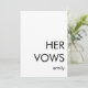 Minimalist Typography Custom Any Colour Her Vows A simplistic, fully customiseable design for the bride's vows, with modern typography. Easily personalise the text, and you can also change the font style, size and colour, as well as the background colours on each side if you wish.