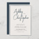 Minimalist Typography Script Indigo Blue Wedding Invitation