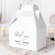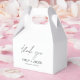 The Wedding Minimalist Typography Thank You Favour Boxes are not only a practical choice but also a visual delight. They enhance your wedding decor with their elegant simplicity, creating a cohesive and sophisticated look for your celebration. Make your wedding day truly special with these charming favour boxes that allow you to express your gratitude with grace and style.