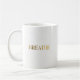 Minimalist typography with gold word breathe coffee mug