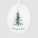 A minimalist style watercolor Christmas tree decorated with colourful lights.