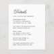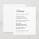 A very simple, minimalist budget wedding details enclosure card, just black text on white background. The title Details (that can be changed) is written in an elegant calligraphic script.