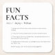 Entertain your wedding guests with some fun and interesting facts about your love story with these wedding fun facts paper drink coasters. The design features a minimalist design with a script calligraphy heading. The script heading is an image that cannot be edited. All of the other text is fully editable. For more advanced customisation of this design, simply select the "Customise It" button above.